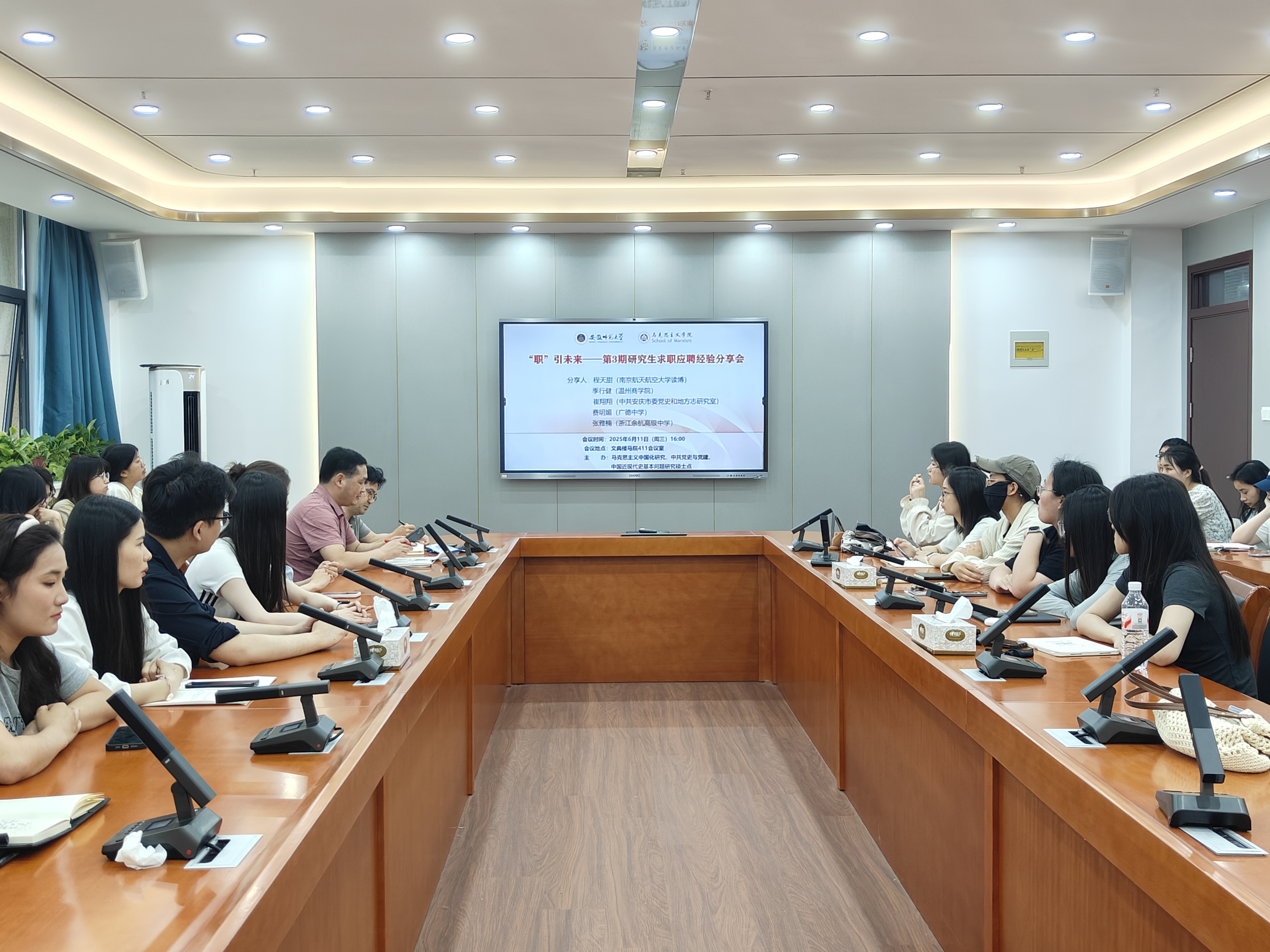 为提升研究生职业技能,共享毕业生宝贵就职经验,6月11日下午,马克思主义中国化研究、中国近现代史基本问题研究、中共党史与党建硕士点在文典楼G411会议室举办“职”引未来——第3期研究生求职应聘经验分享会。此次活动邀请2022级硕士毕业生程天甜、季行健、崔翔翔、费明媚、张雅楠担任分享人,副经理李祥兴教授参会指导,三个方向的一、二年级全体研究生参加,孙亮教授主持本次活动。