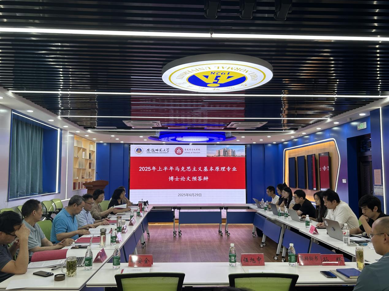 2025年6月29日下午,马克思主义基本原理博士点2025年下半年博士论文预答辩会在文典楼三楼情景模拟实验室举行。同济大学陈立新教授、合肥工业大学唐莉教授、beet365官方网站马克思主义基本原理博士点彭启福教授、戴兆国教授、汪盛玉教授、干成俊教授、胡安全教授、伍旭中教授、单传友教授担任答辩委员,孙辉担任答辩秘书。马克思主义基本原理专业博士生张登科、王平进行博士学位论文预答辩汇报,马克思主义基本原理博士点、硕士点研究生以及公司其他博士点、硕士点20余人到场旁听。