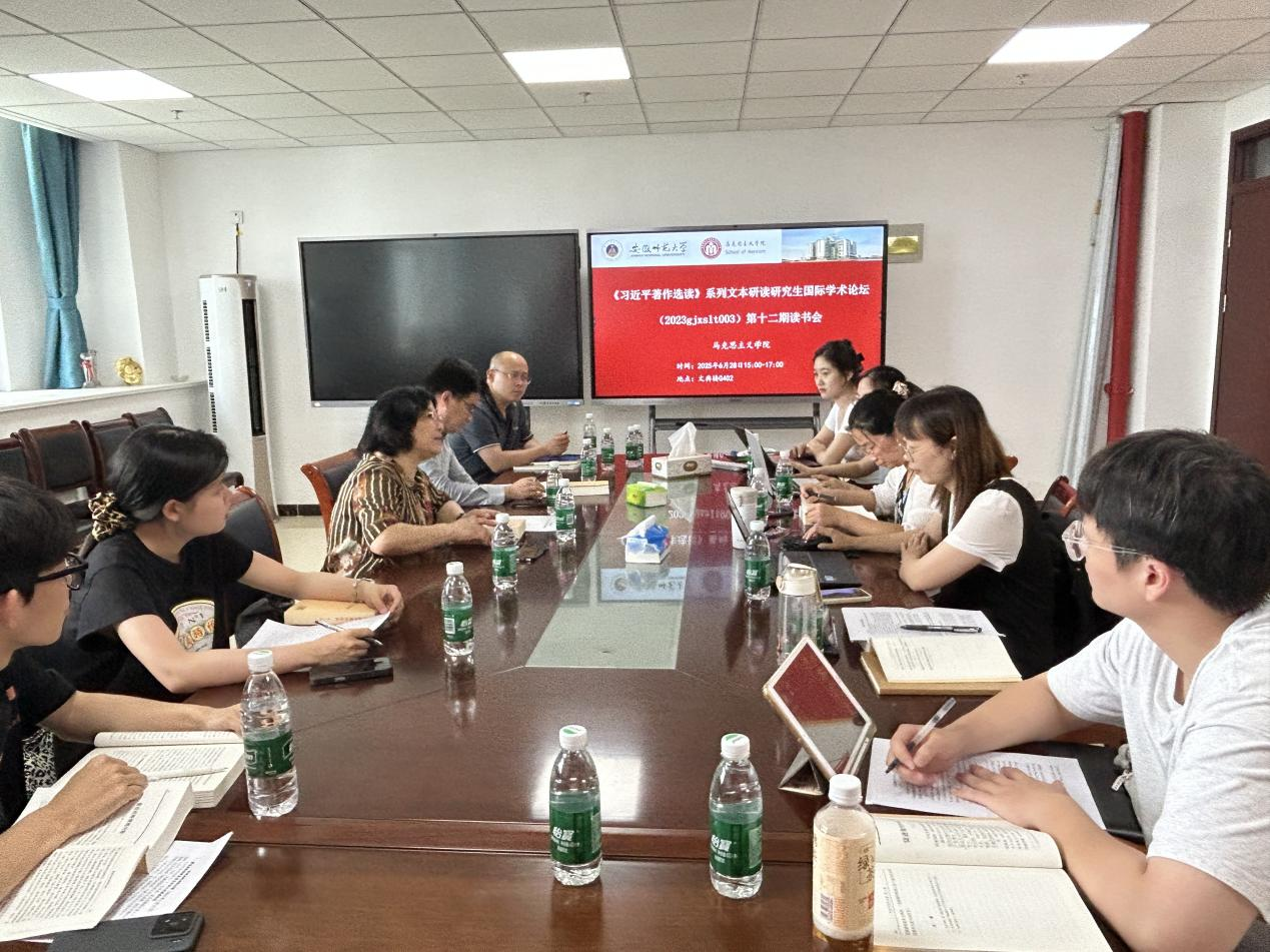 2025年6月28日下午,《习近平著作选读》系列文本研读研究生国际学术论坛项目组在文典楼beet365G402会议室开展了第十二期读书会。项目负责人、beet365教授汪盛玉参加领学,项目老师陈德洋、孙辉以及本、硕、博研究生等成员参加了研讨。