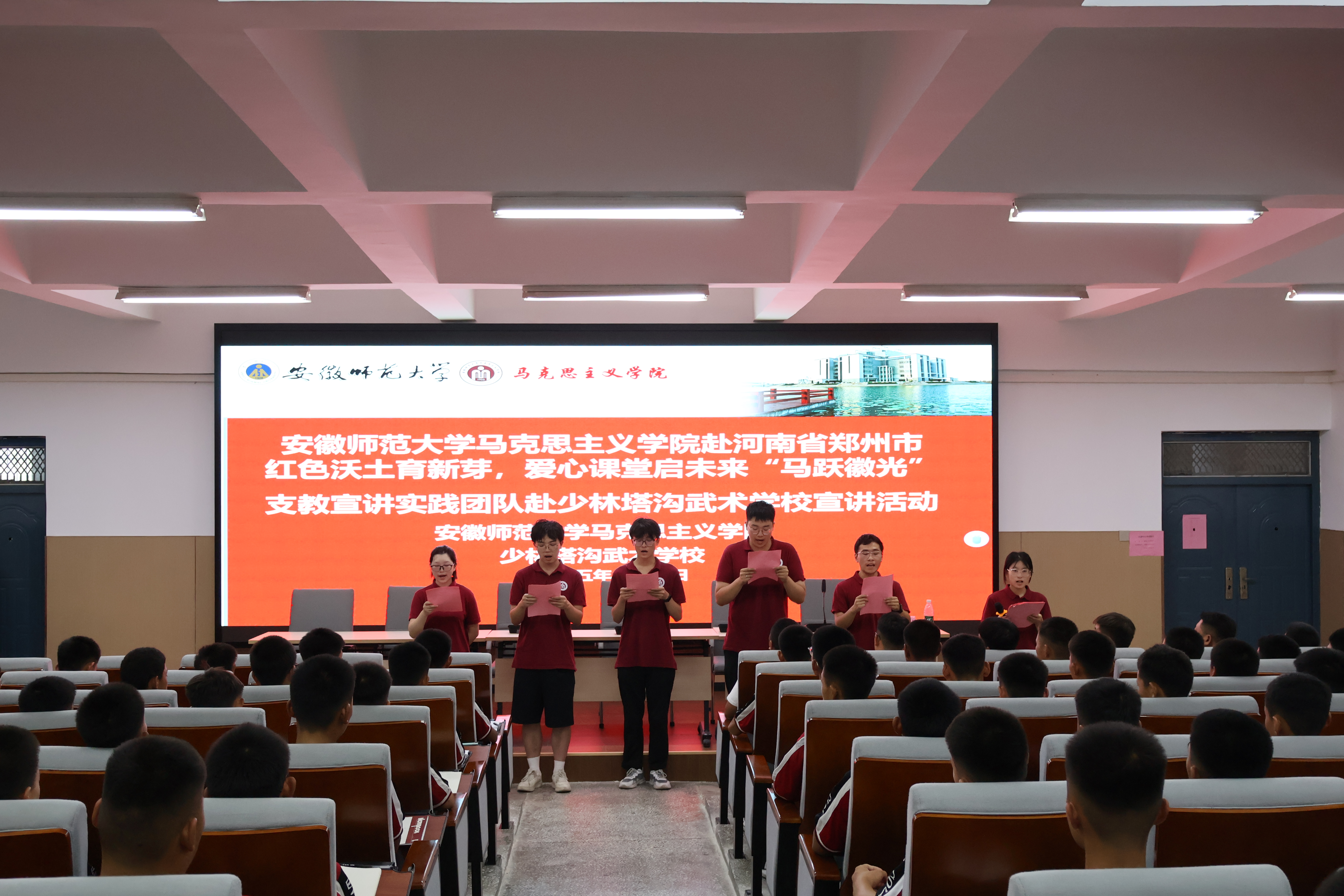 7月3日,“四史”文本研读与实践项目组联合beet365“马跃微光”支教宣讲实践团队,走进河南省登封市少林塔沟武术公司,采用“理论宣讲 + 文化体验 + 实践反思”的模式,开展了一场别开生面的爱国主义教育宣讲活动。