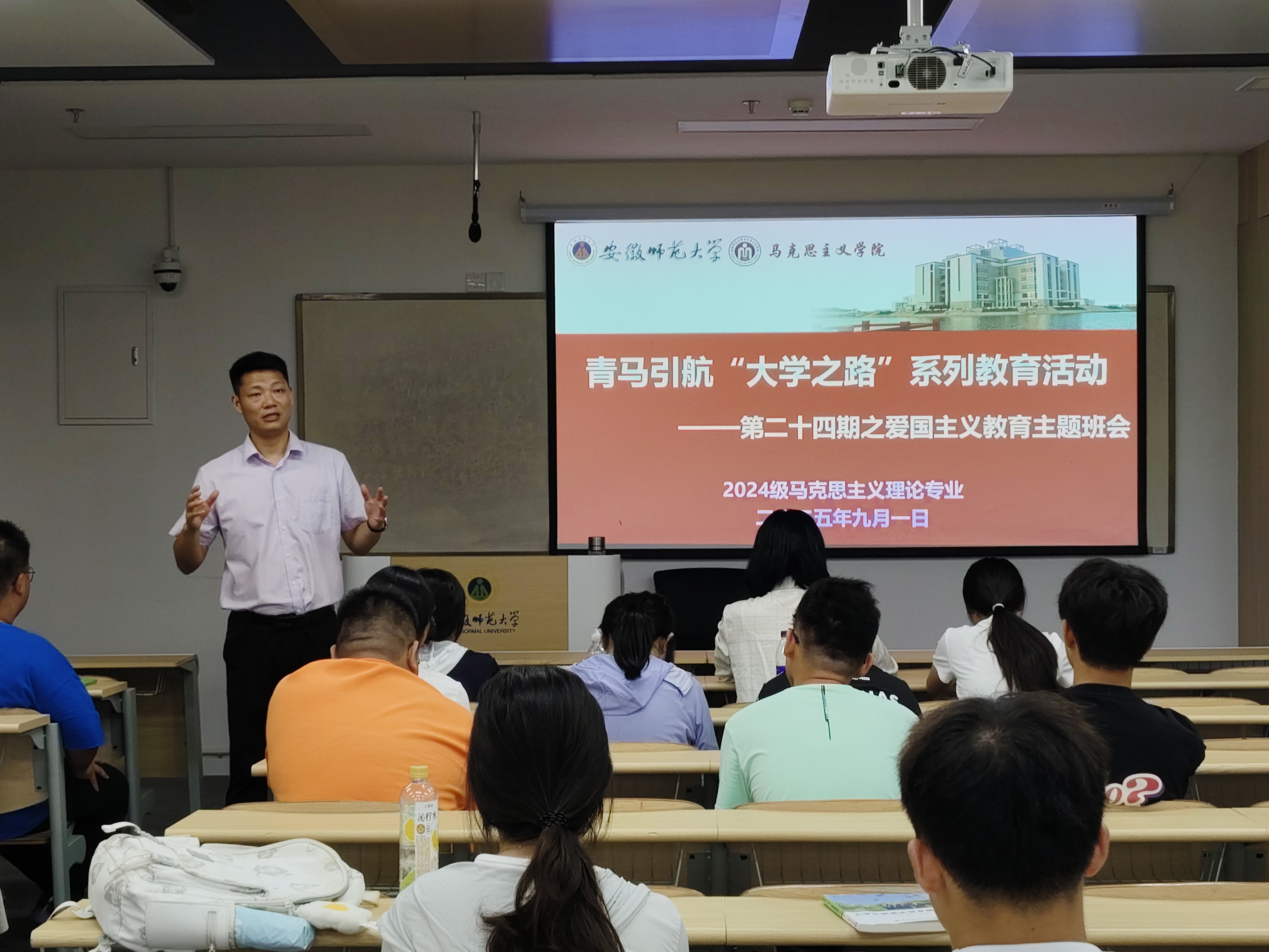 为深切缅怀抗战先烈,传承伟大抗战精神,9月1日下午,2024级马克思主义理论专业在望道楼E210教室召开了爱国主义教育主题班会。本次班会由辅导员夏盼盼老师主持,班级全体同学参加。