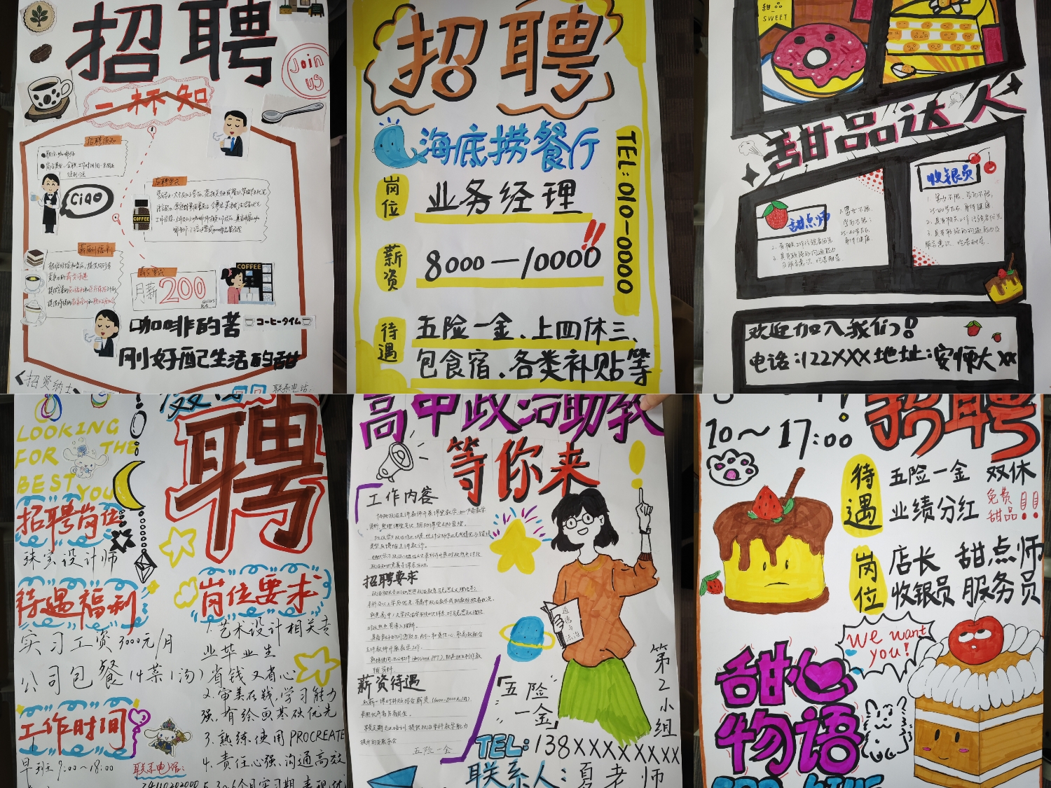 本次招聘海报设计展示活动以实践为导向,帮助同学们在模拟就业场景中加深对招聘环节的理解,有效提升了就业技能与职业素养,为今后的职业规划与求职准备奠定了良好基础。