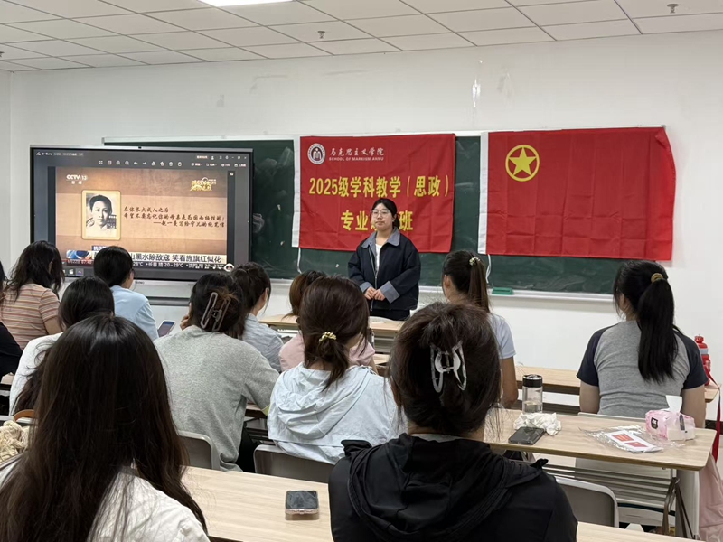 为深切缅怀抗日英烈,传承红色革命精神,9月26日上午,2025级学科教学(思政)专业硕士班在文典楼G111教室开展了抗战精神主题团日活动。本次活动由杨雅婷同学主持,班级全体同学参加。
