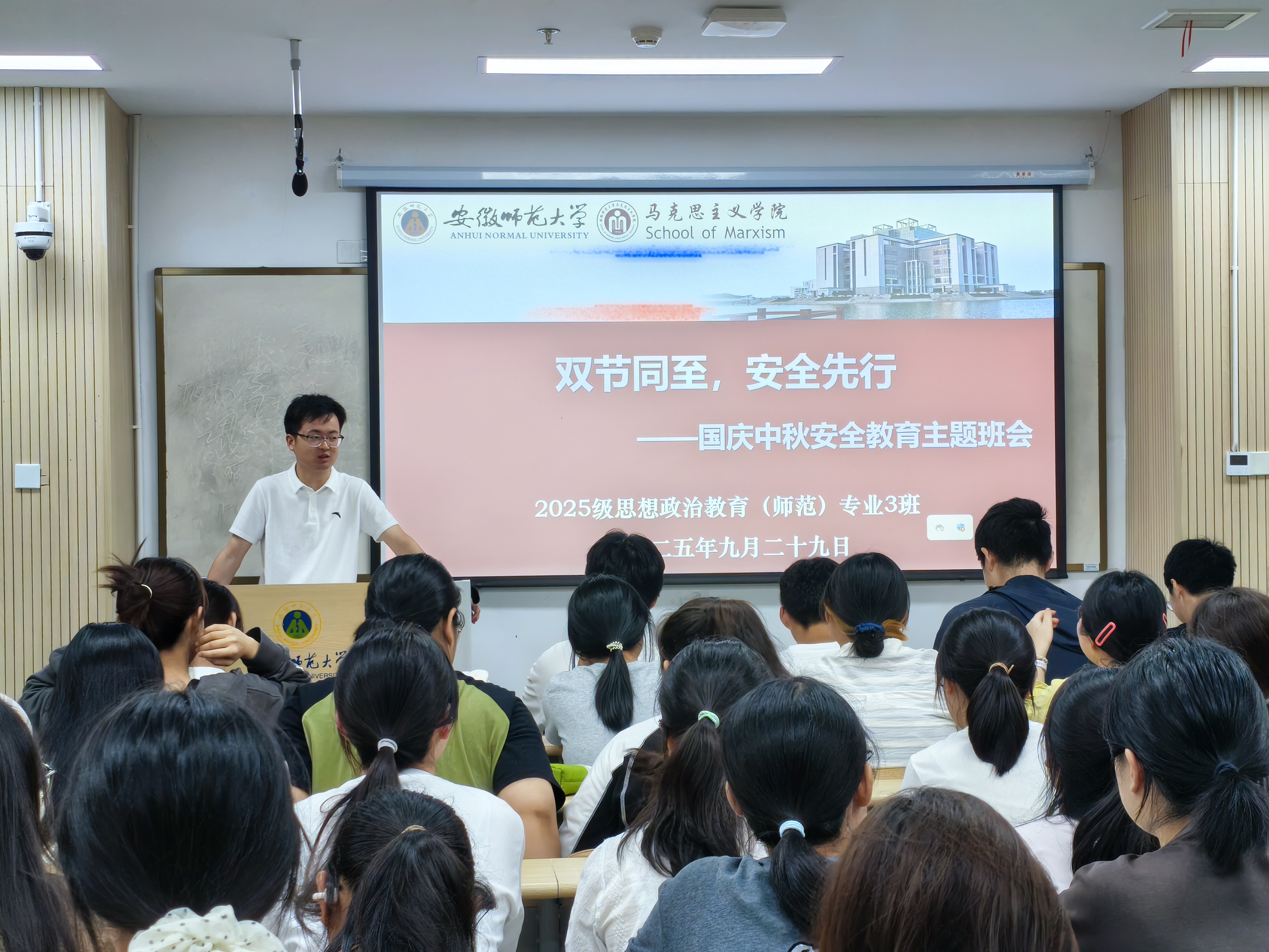 为切实增强员工安全防范意识,保障全体同学度过一个平安、愉快假期,9月29日,beet3652025级思想政治教育专业3班在望道楼E204召开国庆中秋安全教育主题班会。辅导员周勤松主持班会,全体同学参与。