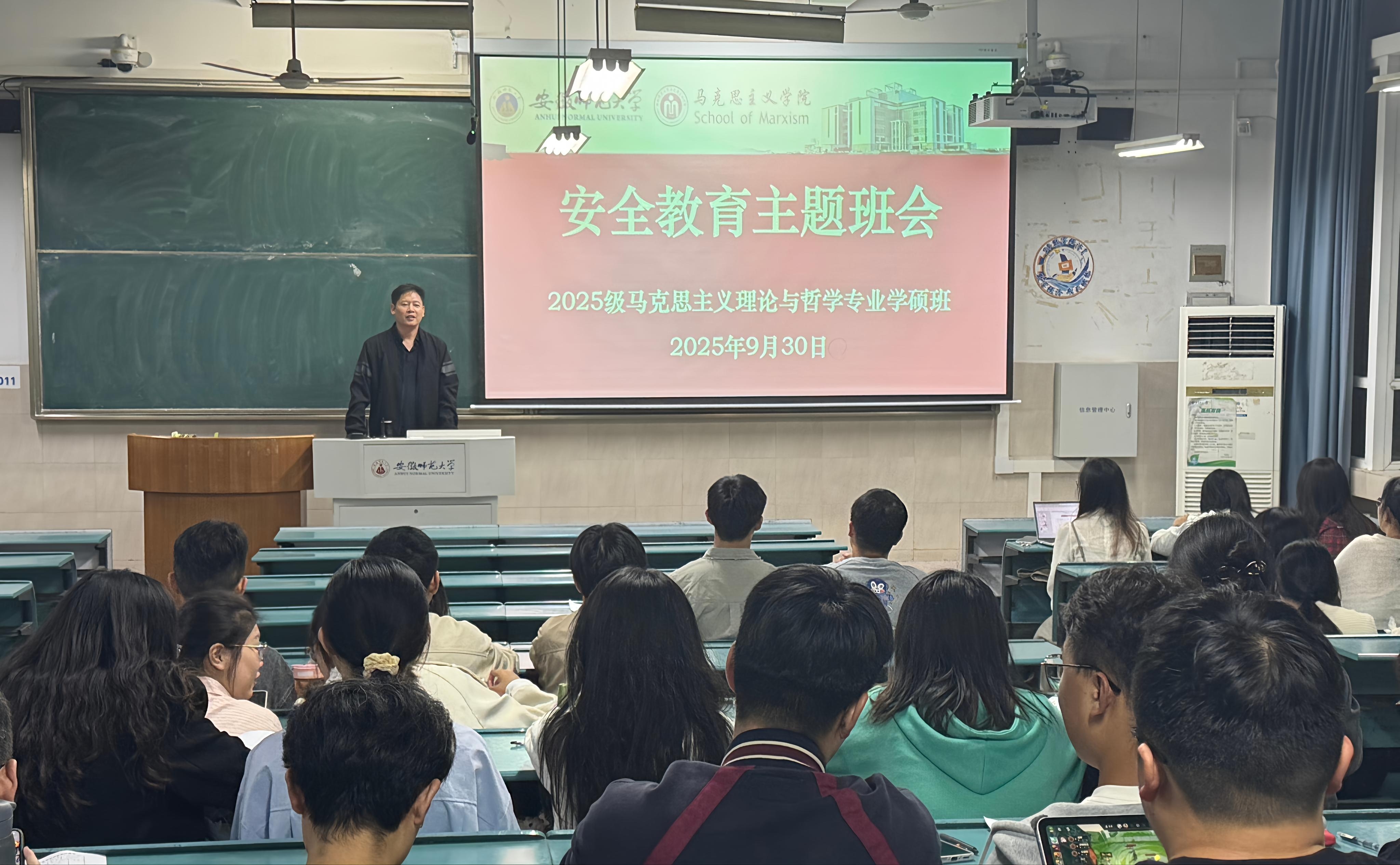 安全无小事,防患于未然。9月30日,2025级学术型硕士生专业班在花津校区2号楼201教室召开安全教育主题班会。班会由辅导员刘东主持,班级全体同学参加。