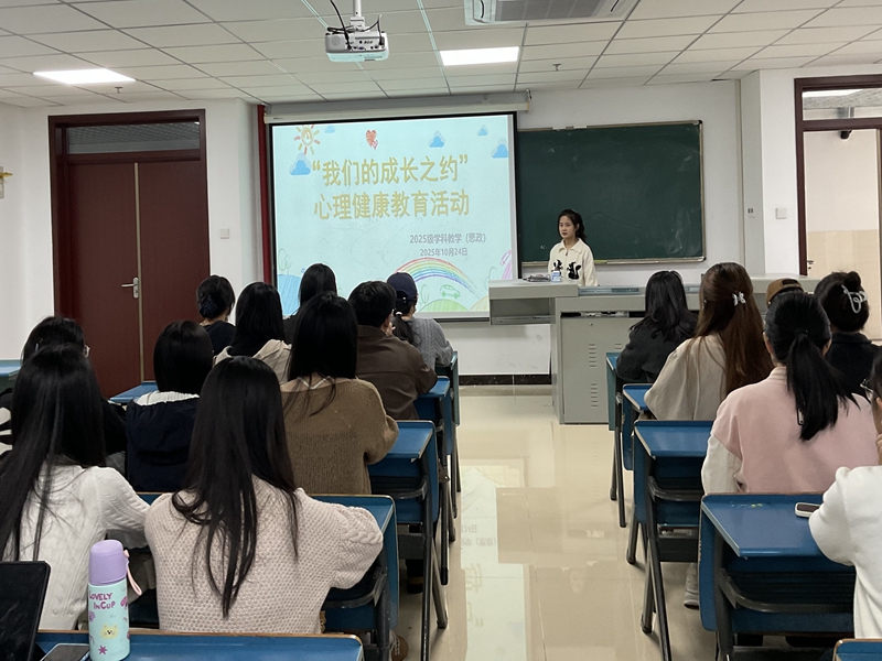 10月24日下午,2025级学科教学(思政)专业硕士班在文典楼E401教室开展“我们的成长之约”心理健康教育活动。活动由心理委员马媛媛主持,班级同学参加。