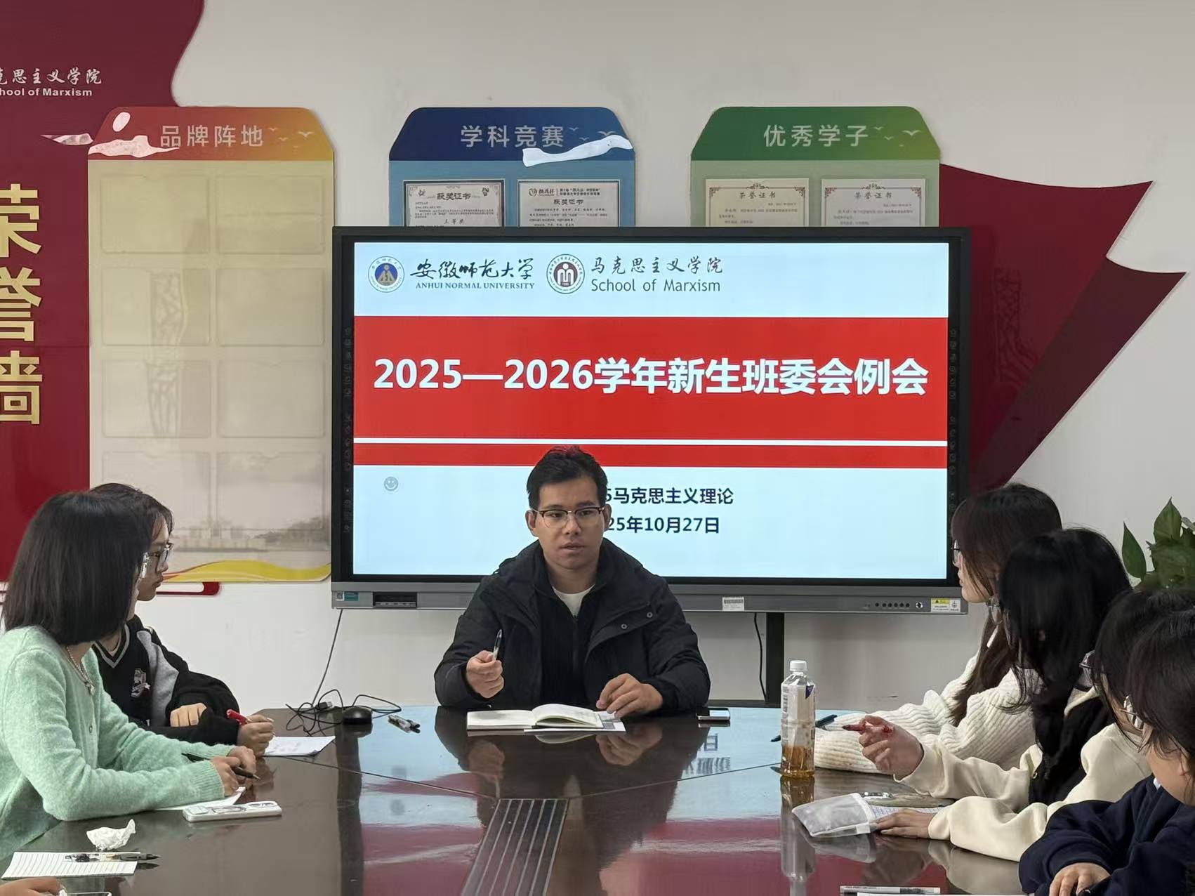 为明确新学期班级建设方向与核心任务,强化班委会成员间的协同配合,10月27日下午,2025级马克思主义理论专业1班在公司本科生党支部组织召开2025-2026学年第一学期班委工作部署会。此次会议由辅导员王梦雨主持,全体班委会成员参会。