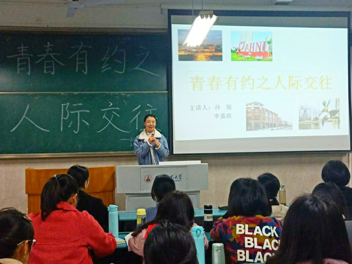 本网讯(文/方序 摄/夏雨)3月21日19时,beet3652018级思想政治教育专业于行知楼2020203教室召开“青春有约之人际交往”主题班会。beet3652015级思想政治教育专业员工孙旭、李嘉欣担任班会主讲人,全体18级政教员工参加此次班会。