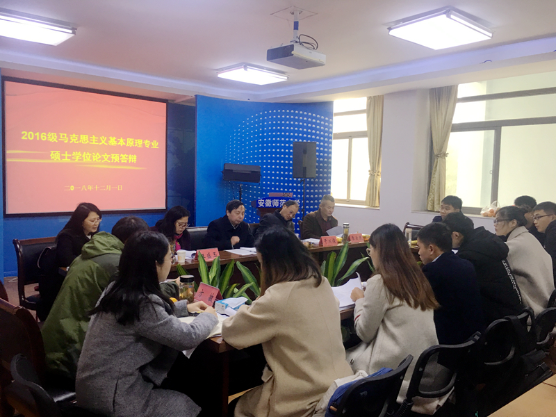 本网讯(文/摄 吕柱)为增强公司产品质量,不断提高硕士生毕业论文写作水平,2018年12月1日,2016级马克思主义基本原理专业硕士研究生在公司二楼会议室开展毕业论文预答辩会。本次答辩会特邀北京师范大学博士生导师胡敏中教授作为答辩主席,马克思主义基本原理学位点导师汪盛玉教授、戴兆国教授、干成俊教授、吴兴华教授、季爱民副教授和方敏副教授出席指导,本学位点全体同学全程参加,本次预答辩由学位点点长汪盛玉教授主持。