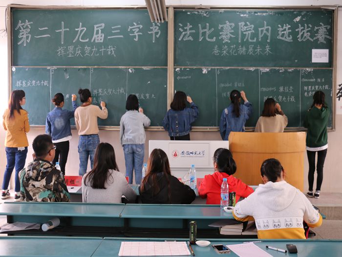 本网讯(文/摄 陈欣悦)探寻国学之根,领略汉字之妙。为进一步增强师范生从教技能,提高公司学子的综合素质,10月28日上午,公司在行知楼2020204教室举办校第二十九届 “三字”比赛院内选拔赛。院团委副书记助理王淑梅、院员工会主席张帆、副主席肖钰一和院第二十八届“三字比赛”一等奖获得者陈丽静担任评委。