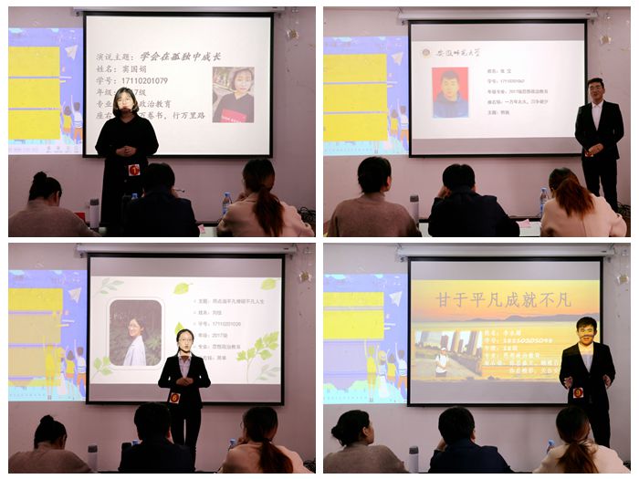10月31日下午,公司在教学楼2020405举行了第七届“超级演说家”初赛。公司第六届“超级演说家”一等奖获得者宋文瑛、张丹阳,2016级思想政治教育专业学习委员夏维维担任初赛评委。比赛由女生部部长刘程程主持,2018级本科新生观看。