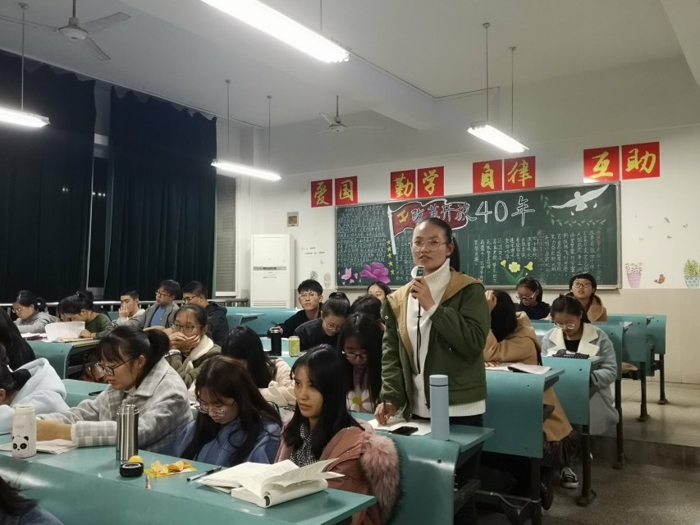 路丙辉教授从“书友”、“师友”、“朋友”三个方面为大家展开本次的讲座。首先,路丙辉教授以毛泽东读《共产党宣言》为例,提出大学的自主学习需要勤奋读书,强调了读书的方法与读书的计划极其重要,并为同学们介绍了读书的方法。随后,路丙辉教授对同学们是否有信仰发问,并提出“实用”信仰这一概念。接着,路丙辉教授用“领路人”“大向无行”的语句系统概括总结了大学中“师友”的交往方法,提出人际交往中“爱是需要鼓励的”。路丙辉教授还将宿舍喻为“根据地”,指出大学中朋友是锻炼自己能力与情商的重要伙伴,需要主动去把握,在交往中共同成长。最后,路丙辉教授耐心地给予了解答了同学们提出的问题。