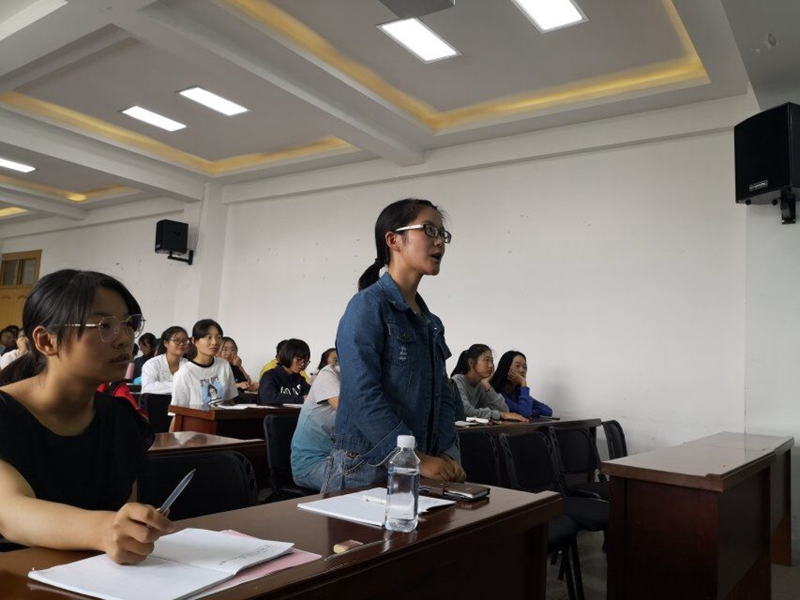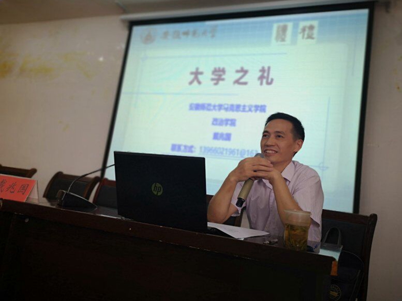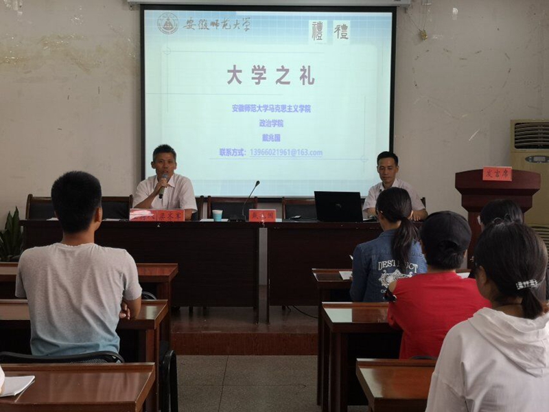 戴老师以《礼记?大学》《论语?为政》中关于讲礼与修身的名言为引语,从“大学与大气,读书之道,人事之道,大学之觉醒,行礼与行道”五个方面详细讲解。在“大学与大气”方面,戴老师以“为什么要知礼,如何知礼行礼,礼的本质何在”为要点,强调了“礼”的价值和意义。在“读书之道”方面,戴老师用《道谭》中对读书的名言进行引述,使同学们正确领悟到读书与思考的要义。在“大学之觉醒”方面,戴老师采用《道德经》中名言点出大学为思考与锻炼之所。在“行礼与行道”方面,戴老师用生活中的典型实例,向同学们作了通俗易懂的阐释。最后,戴老师从能治,会治,善治三个方面向同学们提出了殷切期望。