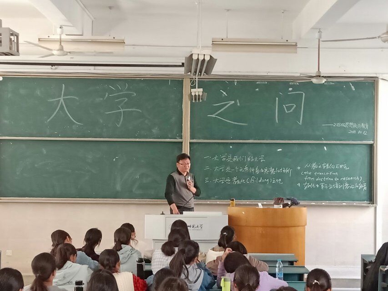 本网讯(文/方序 摄/夏雨)金秋时节,丹桂飘香。在这秋高气爽的日子里,10月12日上午,余在海老师在行知楼2030204教室主讲“大学之问”,全体18级新生参加此次讲座。