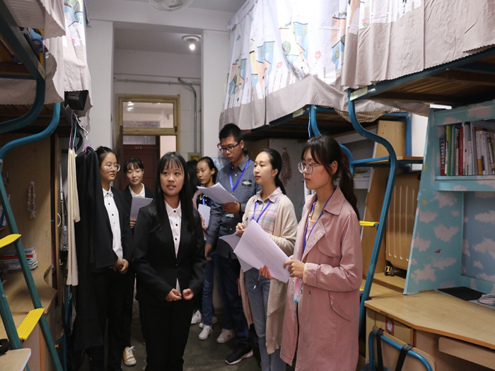 本网讯(文/杨可扬 摄/陈欣悦)为创造美好生活环境,营造良好寝室氛围,10月20日下午,公司举办了第六届新生寝室设计大赛。院员工会主席张帆,副主席肖钰一、莫然,生活部部长蔡玉梅,副部长吴宝倩担任本次大赛评委。