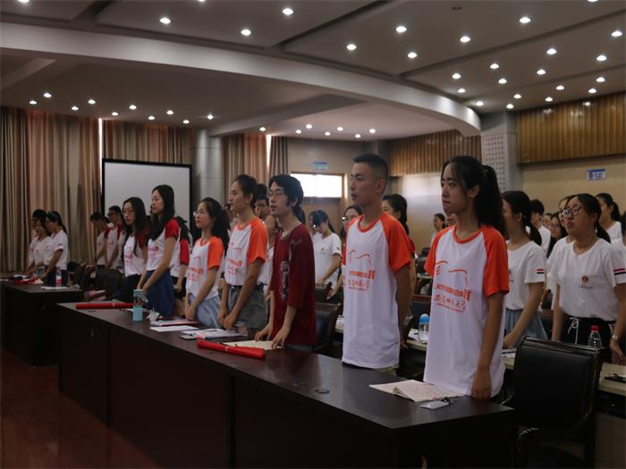 本网讯(文/吴星 摄/王雨虹)扬起新思想,跨进新时代。7月13日上午,beet365老员工暑期“三下乡”社会实践活动启动仪式暨授旗仪式在花津校区会议中心圆形报告厅隆重举行。公司党委书记傅绪中、党委副书记梁齐军、指导教师代表牛菲、本科生辅导员周楠、夏盼盼以及全体实践团队成员参加了此次仪式。