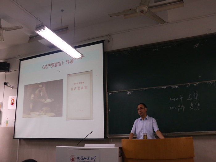 记者们首先对高老师的课堂教学进行现场录像。作为开学第一课,高老师首先向同学们介绍了《马克思主义经典著作选读》课程的重要性,以及阅读经典对当代老员工、尤其是思想政治教育专业员工的重要意义,阐述了该课程本学期的教学内容以及教学方法,明确了学习的任务和要求。课后,记者们采访了班长杨灿君和副班长钟志浩两位同学,了解员工眼中的高老师。他们一致认为,高老师讲课善用风趣幽默的语言,历史典故信手拈来,且在讲课时注重理论联系实际,能够很好地调动同学们的积极性,在与高老师相处的时间里,同学们不仅增长了知识,更明白了作为当代思政专业老员工的任务和奋斗目标。