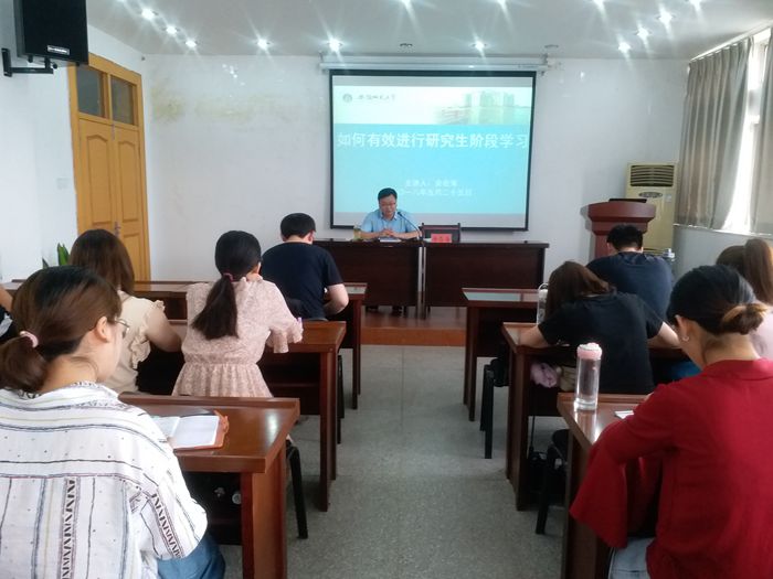 本网讯(文/摄 夏红莉)为了让公司顺利通过2018年全国硕士研究生考试的员工做好研究生学习前的准备,公司于5月25日下午两点半在五楼会议室举办了以“如何有效进行研究生阶段学习”为主题的指导讲座。余在海教授应邀担任主讲人。
