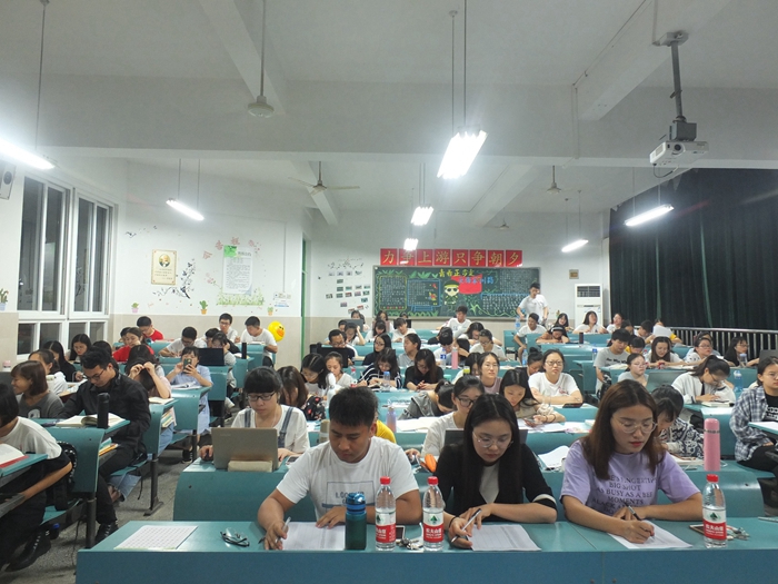 本网讯(文摄/汪婷)书写风华正茂,展示青春风采。作为政教专业的学子,很多同学未来会走上三尺讲台,为提高员工粉笔字书写水平,增强师范生专业技能。5月28日晚七点半,公司2017级思想政治教育专业员工在2020204教室成功举行师范生粉笔字考核活动。考核特邀研究生张瑜、齐旭旺和刘梦巧担任评委。