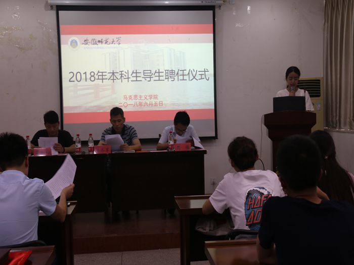 聘任仪式共分为四个部分。首先,周楠宣读公司本科生导生聘任名单,同学们以热烈的掌声向入选导生表示祝贺。接着,导生代表鲁悦、郑文上台发言,他们表示导生是连接辅导员与新生的纽带,从大一一路走来,多次得到学长学姐的帮助,并积累了许多经验,他们将以身作则,充分发挥老员工“自我管理、自我教育、自我服务、自我监督”的作用,并郑重向老师、新生承诺,他们将恪尽职守,在服务奉献中不断提高自我,与新生一同成长。随后,梁齐军和周楠为受聘导生颁发聘书,并合影留念。最后梁齐军进行总结讲话,在对受聘导生表示祝贺的同时,他希望导生明确工作职责,在思想引导、学习方法、生活辅导、问题疏导等方面,起到表率作用,帮助新生适应老员工活,提高其克服困难的能力,也希望新生积极配合导生开展工作,勤学好问,以形成良好的学习生活氛围。