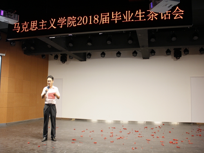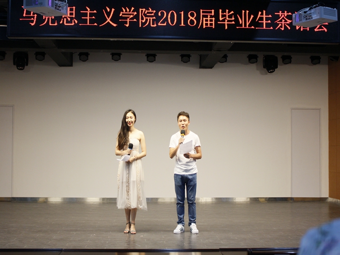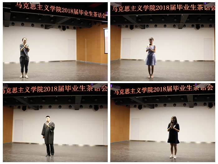 毕业生茶话会在视频《回首、再相见》中拉开了序幕。谢文君等四位员工代表进行发言,从入学时的懵懂到毕业时的沉稳;从艰辛的考研之路到求职的漫漫探索,对于老师的无微关怀,对于同学的贴心体谅,他们始终铭记感恩。随后,由王诗越等人表演的方言版《再别康桥》诗朗诵活跃了全场气氛;在鲁悦、陈枫表演相声《好好学习》中,学子们诙谐幽默的表现感染了在座的所有同学,观众们笑声连连;在由各位学子倾情演唱的《稻香》、《凤凰花开的路口》、《送别》等歌曲中,大家感受到毕业的欢欣与不舍;一首《十年之约》情感真挚,表达了所有毕业学子们对母院的眷念,对大学青春的留恋。听着深情的朗诵,现场很多老师和学子擦拭起眼角,不舍之情萦绕心间。最后,辅导员周楠给学子们总结寄语:四年的相伴,不短不长。毕业了,要记得做一个善良、觉悟、有价值的人。祝愿同学们成长也成功,不忘初心、前程似锦!