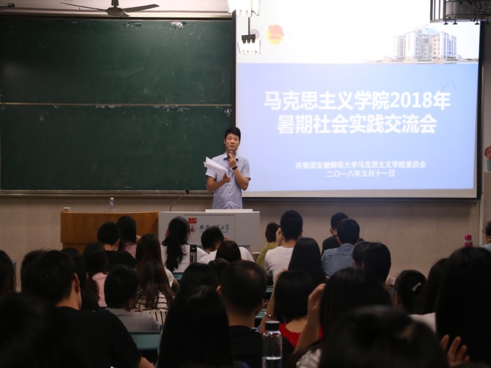 5月11日晚7时, 2018年本科生暑期社会实践交流会于行知楼2020203教室顺利举行。团委负责人夏盼盼以及团委助理脱颖出席此次会议,会议还邀请了2016级研究生齐小学、2015级本科生刘歆怡、浦仕芳和俞璐四位去年优秀团队代表做经验分享。2016级全体本科生及2017级部分本科生代表到场学习交流。