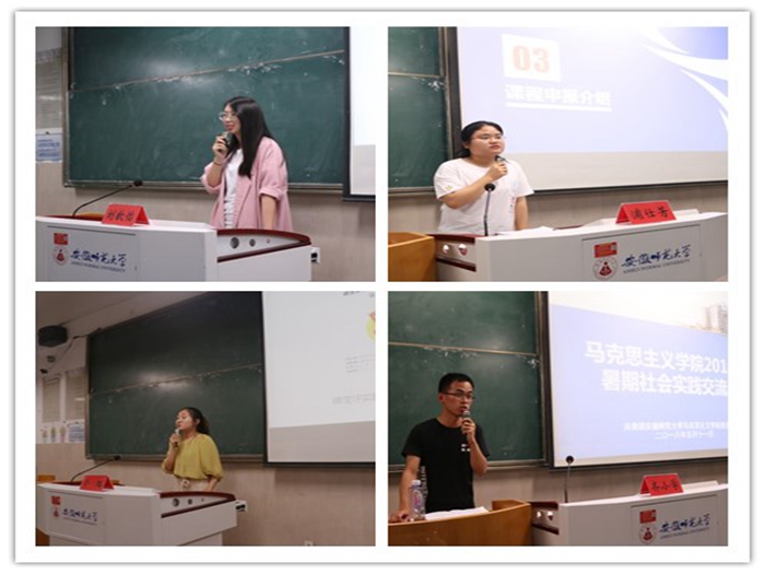 会议伊始,夏老师针对此次暑期社会实践向同学们提出了几点要求。首先他指出社会实践应紧紧围绕“七彩课堂”、弘扬国学经典、理论宣讲、乡村振兴战略以及精准扶贫等八大主题展开,立足当下,体现时代特色。其次,他提出组队应遵循就近原则,充分做好经费预算。夏老师还特别指出安全第一,着重强调了暑期社会实践中安全的重要性。随后,优秀团队代表给同学们分享了实践经验。齐小学首先指出社会实践主题应凸显公司及专业特色,并强调了联系对接单位的重要性。然后,他就队员构成、活动形式、交通出行和经费预算等问题做出了详细解释。刘歆怡从实践前期主题的确立、活动的策划以及实践后期的总结等多个方面分享了自己的经验。浦仕芳从myouth申报及支教项目注意事项两个方面进行讲解,强调了沟通协调和团队合作的重要性。俞璐则主要介绍了调查报告的撰写,提醒同学们应提前想好需注意的事项,做好充分的准备。分享结束后,四位优秀代表就同学们在社会实践方面提出的疑问做出了详细的解答。