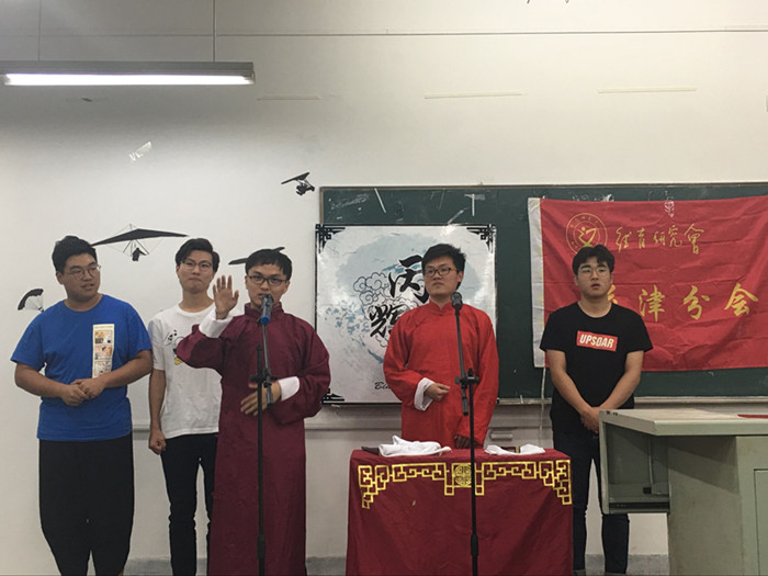 本网讯(文/张洪涵 摄/于洋)为丰富老员工的课余文化生活,营造轻松愉快的老员工活氛围,德育研究会于5月10日19点30分在2070101教室举行“丙辉漫谈之艺术探趣”活动。出席本次活动的有特邀嘉宾路丙辉教授、疯狂萤火虫相声社的社员们以及其他积极参加活动的同学。本次活动以艺术形式激扬青春的活力,以相声小品为载体弘扬传统文化。