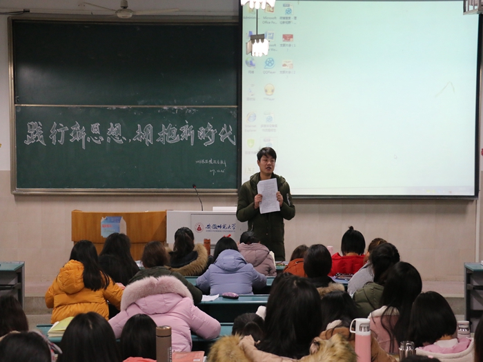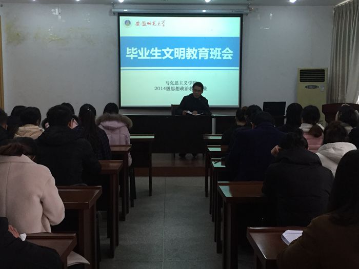 二、举行班会,强化意识。为进一步强化本科生安全意识、感恩意识以及诚信考试意识等,12月26日晚上,16、17级本科生辅导员夏盼盼分别在2020203和2020204自习教室给16、17级政教本科生召开班会,布置期末考试期间的工作,着重提醒同学们提高安全意识,杜绝违纪作弊,遵守考试纪律。紧接着,12月29日上午,14级政教本科生辅导员周楠在公司五楼会议室召开了毕业生文明教育主题班会,班会从考研笔试、复试以及就业三个方面展开,重点强调毕业论文初稿撰写工作。