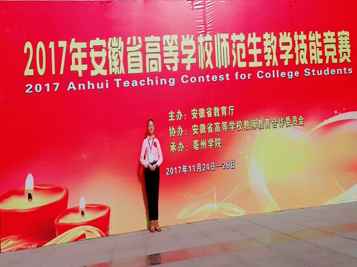 本网讯(beet365 王诗茹)11月24日至26日,由安徽省教育厅主办、安徽省高等院校教师教育合作委员会协办的第八届安徽省高等公司师范生教学技能竞赛在亳州公司举行。本次大赛共有来自全省29所高校的249名选手同场竞技。竞赛采用第三方封闭式命题,不指定教材,对参赛员工的专业知识、教学技能、表达能力、身体及心理素质等均是严格的考验。本届竞赛一、二、三等奖按参赛人数的10%、20%、30%比例设置。公司2015级思想政治教育专业本科班王诗茹同学获得二等奖,充分展示了政教学子扎实的教学理论功底和专业技能。