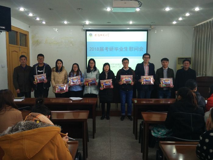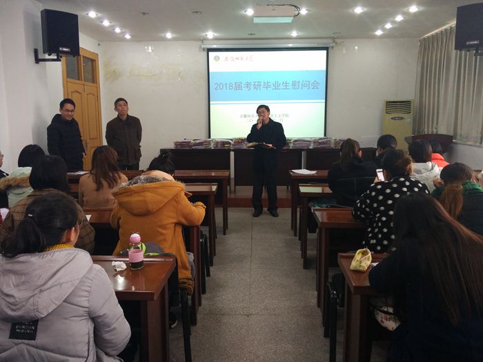 本网讯(文/摄范冉冉)冬日关怀,情暖研途,12月1日下午,beet365在公司五楼报告厅举办考研毕业生慰问会。公司党委书记傅绪中,党委副书记梁齐军及2014级思想政治教育专业部分考研员工到场参加。会议由辅导员周楠主持。