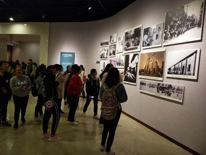 本网讯(文/刘鑫楠 摄/刘鑫楠)鸠兹春秋,水韵芜湖。为增强同学们的历史责任感,更好地了解芜湖历史变迁和发展,11月5日早上九点,17级政教新生在姚宏志老师的带领下,参观了芜湖博物馆,重温了“芜湖历史的记忆”。
