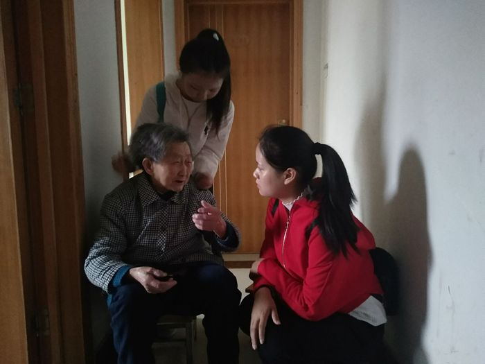 同学们到达之后,敬老院经理对同学们的到来表示了热烈的欢迎。走进楼里,老人们由惊讶转为惊喜的表情清晰可见。到了各个房间,同学们很快进行了分工:一部分拿起扫帚打扫卫生,一部分陪老人聊天,还有一部分拿起手机,记录下感人的瞬间。包括老人们在内的每一个人都面带笑容。当有奶奶被勾起对家人的思念时,同学们表示:我们都是您的孙子孙女!当同学们喂一奶奶吃饭时,那种温情瞬间弥漫在整个房间,瞬间震撼了所有人。一同学说:“我们从没有话题到开心的聊天,一开始也不太适应爷爷奶奶的方言,但是我们逐渐用热情让他们打开心扉,语言不再是障碍,话题也慢慢变得轻松,爷爷奶奶的脸上也渐渐有了笑容。”离开时,老人们亲切的握着同学们的手,对同学们的离开表示了深深的不舍。在老人们的殷切期盼中,很多同学都与老人合了影。