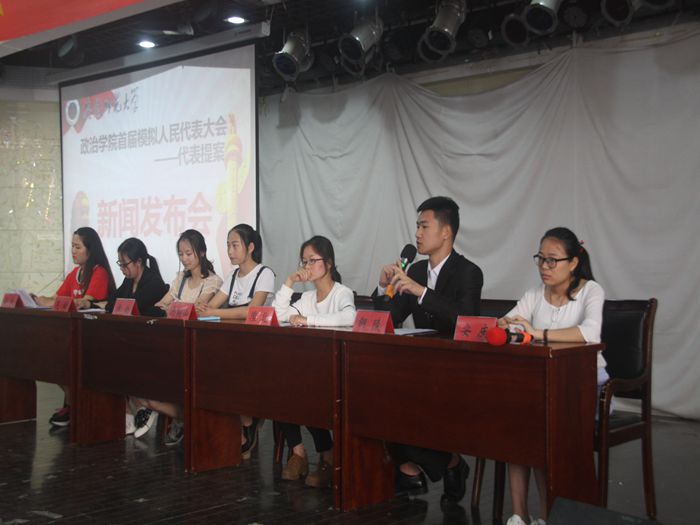 活动前期经过工作人员层层筛选,有15支队伍进入决赛。决赛分为两个环节:代表团提案和新闻发布会。第一环节,由各代表队伍在规定时间内进行提案汇报,汇报内容多种多样,根据社会上一些问题进行分析,同时提出具体可行的解决方法;第二环节,按照参赛队伍的序号分为两轮进行新闻发布会,其中新闻发言人须当场回答模拟记者的随机提问,代表们用专业的知识巧妙而准确地解答了记者们的疑问,赢得了观众阵阵掌声。最后,评委老师王艳就同学们的表现进行点评,她既肯定了同学们的优秀汇报和精彩答辩,同时也指出了大家存在的问题,提出了进一步完善的方法。至此,本次“模拟人民代表大会”圆满结束。