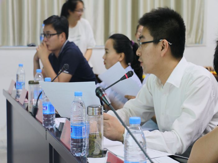 本网讯(文/利洋 摄/朱庆丰)为进一步加强和改进社会实践工作,提升社会实践活动的系统性和有效性,5月24日下午,公司在五楼报告厅举办2017年暑期社会实践立项答辩会。此次答辩会由院团委书记、2013级本科生辅导员张磊,2014、2015级本科生辅导员周楠,2016级本科生辅导员夏盼盼,2015级研究生辅导员王宏,2016级研究生辅导员陈琪波、曹磊组成评审团,共有18支社会实践团队参加答辩。