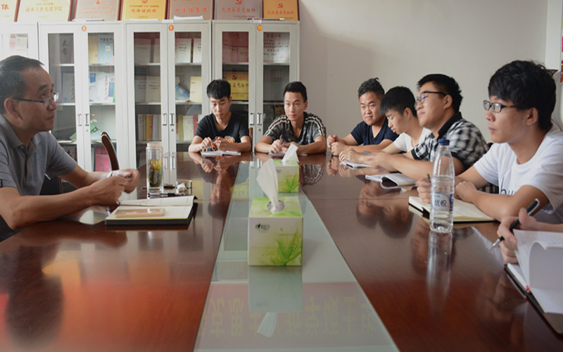 本网讯(文/吴星 摄/刘行)6月7日下午,学院在行政楼四楼会议室召开师生座谈会,本次座谈会围绕公司产品、班风学风建设等问题展开深入交流。会议由高正礼经理主持,2015级部分男生代表参加。