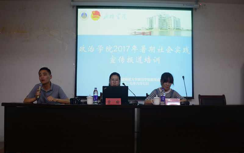 此次培训会分为两个版块:宣传报道培训和实践技能培训。首先进行的是宣传报道培训。章瑜向同学们介绍了摄影方面的知识及注意事项,讲解相机使用的基本知识以及新闻摄影的特殊性,同时,她结合上一年暑期社会实践所拍照片,就拍摄角度、构图、后期处理等问题进行具体的讲解。何云笑则对同学们进行新闻稿撰写的培训,从新闻的基本知识、消息稿的写作方法、校园新闻的写作要求、采访的基本技巧四个方面进行具体阐述,指出新闻稿撰写的注意事项,强调要突出重点,巧用修饰。接着,她结合具体新闻稿件从结构和内容两个方面分别进行了评析,加深了同学们对撰写新闻稿件的理解。之后进行的是实践技能培训会,李维洲向同学介绍了暑期社会实践的有关程序和注意事项,着重强调了前期准备过程中的单位对接和交通问题,并结合自己的实践经历,对实践过程中可能出现的具体问题进行了说明,包括安全问题、团结协作问题、与实践单位的沟通与协调问题等。
