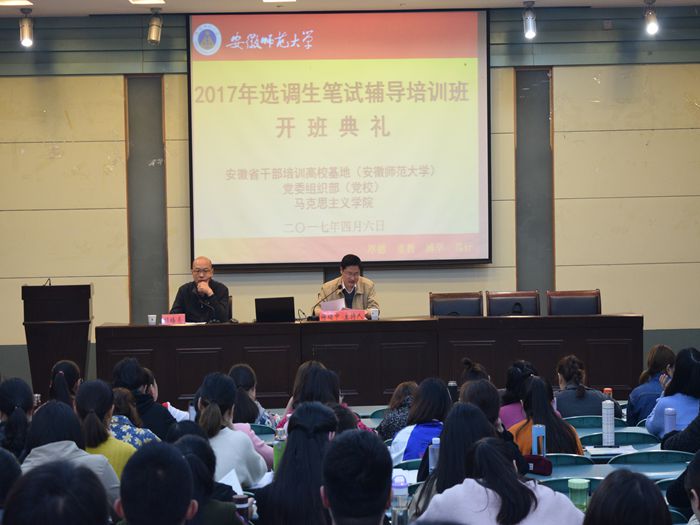 本网讯(马克思主义公司 周楠)为贯彻落实《关于印发安徽省2017年选调优秀高校毕业生到基层培养锻炼工作实施方案的通知》(皖组通字〔2017〕11号)精神,进一步引导和鼓励优秀高校毕业生到基层一线锻炼成长,提升公司考生在选调生招考中的竞争力。由安徽省干部培训高校基地(beet365官方网站)、公司党委组织部主办,马克思主义公司承办的beet365官方网站2017年选调生笔试辅导培训班于4月6日至8日举行,来自全校各公司的200余名员工接受了培训。本次培训属于公益性质、不收取员工任何费用。