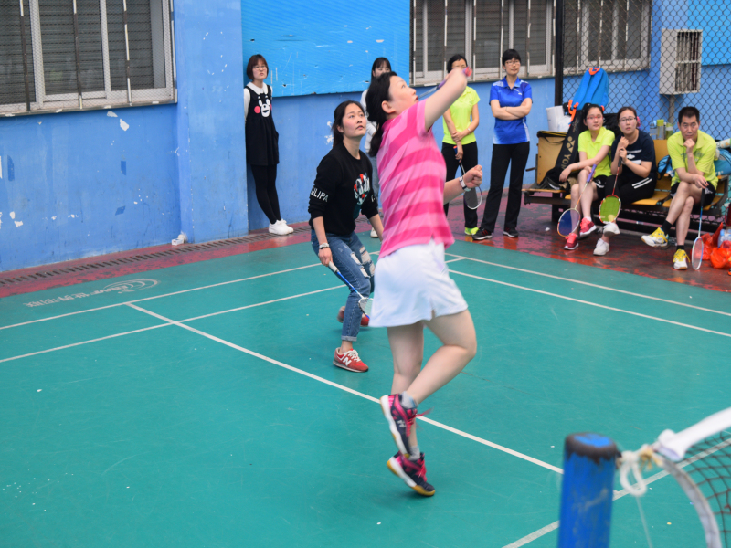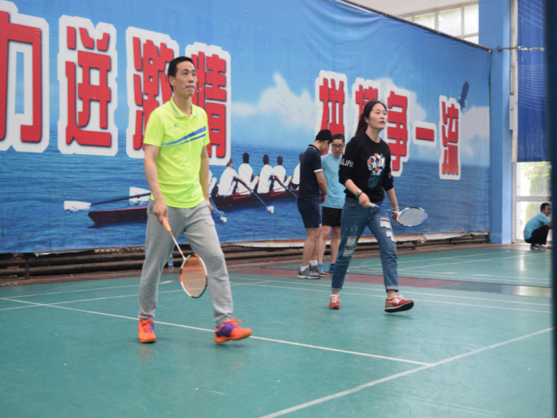 本次比赛分为两个阶段,第一阶段是进行四个小组的循环排名赛,各小组取前两名进入第二阶段的淘汰赛,展开四强争夺赛。最后进入冠、亚、季军争夺赛。比赛分为男双、女双、男单、女单与混双五个项目,其中男双、女双必须由导师与员工组队。公司与法公司进行的首场比赛精彩纷呈,高远球、扣杀、吊球等各种高难度球技被选手们演绎地淋漓尽致,王善武同学凭借其精湛的技术和巧妙地战术拿下首轮男单比赛。纵观整轮循环赛,公司师生都激情高昂,院研究生会成员们在旁齐声助威呐喊,导师与员工之间配合默契,充分发挥出各自的专业技能,一招一式扣人心弦。戴兆国老师、胡梅叶老师多次将自己的打球心得与员工进行交流,给予同学们技术上的指导和情绪上的抚慰。两位老师精湛的球艺多次让比赛进入白热化状态,最终成功带领公司团队打进淘汰赛。