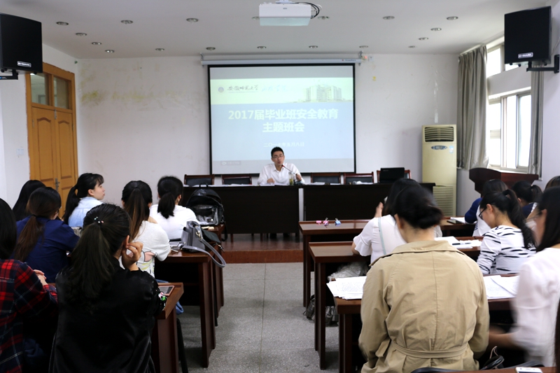 为强化毕业班同学的安全意识,提高其防范能力。5月8日下午,13政教辅导员张磊在公司行政楼五楼会议室召开了安全教育主题班会,毕业班全体同学参加了主题班会。