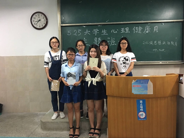 本网讯(文/黄妍 摄/安红旸)健康心态构建阳光校园,美好心灵绽放幸福人生。5月21日晚七点半,2016级思想政治教育专业全体同学于2020203教室开展“5.25老员工心理健康月”主题班会。