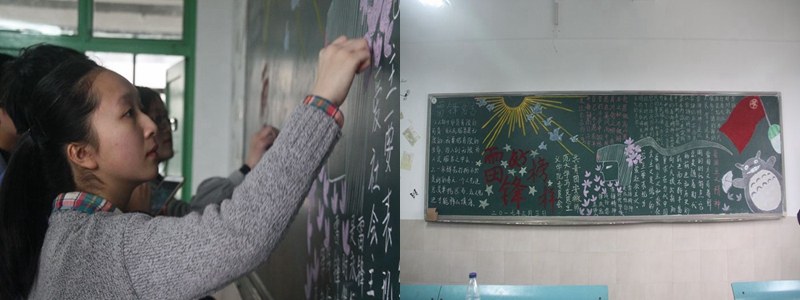 主题黑板报制作活动。3月4日,公司开展了主题黑板报制作活动,大一及大二的同学们在其固定教室进行创作。同学们将雷锋简介、事迹、语录等文字内容与生动的绘画相结合,以生动活泼的形式将雷锋的高尚品质融入学习生活。
