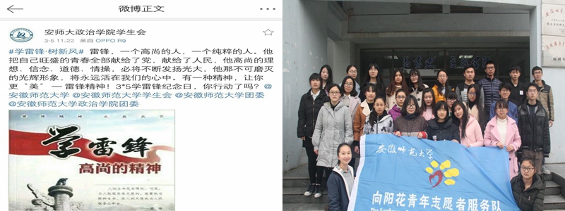 雷锋精神进小学活动。3月1日,由院员工会心理部主办的“雷锋精神进小学”活动顺利开展,院员工会部分成员走进安师大附小,通过理论宣讲和有奖竞答两个环节,向他们讲解中华民族的先进事迹,宣扬爱国抗日民族英雄的伟大精神。