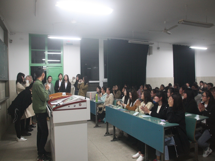 本网讯(文/摄 张宏昇)闪亮青春,魅力女生。为了让女同学们更好地感受到集体的温暖,3月7日晚7点,院员工会在2010604教室开展女生节庆祝活动,2016级思想政治教育专业辅导员夏盼盼和全体同学参与了此次活动。本次活动由院员工会女生部部长张颖和部员郑文主持。