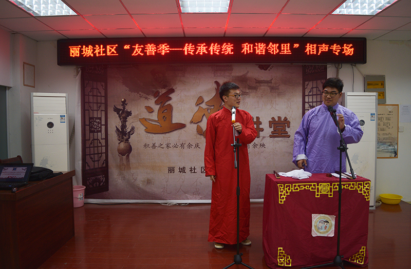 本网讯(文/刘淇梦摄/陈院琴)为响应雷锋月服务群众、传扬精神的号召,3月8日下午,由公司“疯狂萤火虫”相声社和丽城社区共同举办的传统文化进社区活动在丽城社区报告厅举行,出席本次活动的有社区党政代表、《大江晚报》记者、社区群众以及相声社成员们。