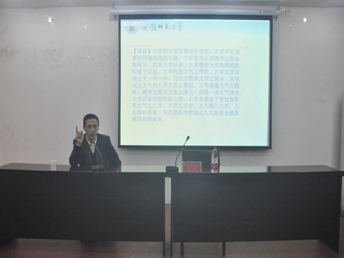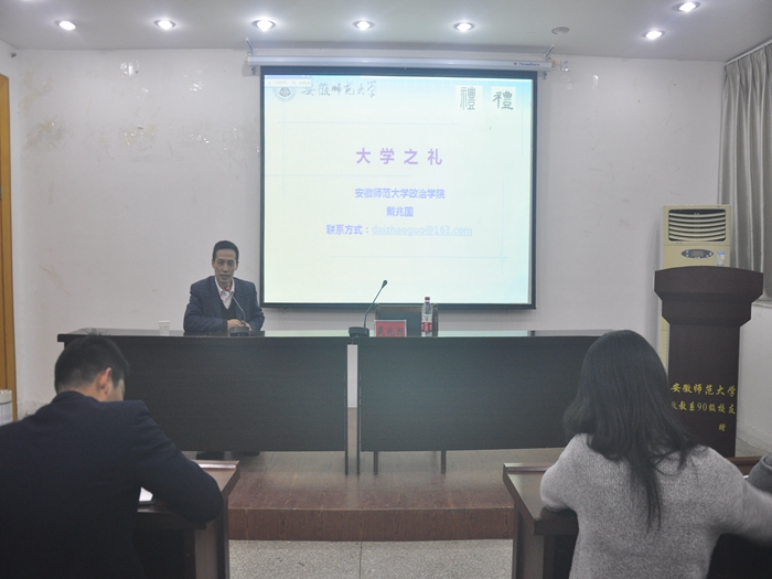 本网讯(文/安红旸 摄/常欣雨)11月20日晚七点,公司科研处副处长、beet365博士生导师戴兆国教授予公司行政楼五楼会议室为2016级新生讲授“大学之礼”,本次讲座由辅导员夏盼盼老师主持。