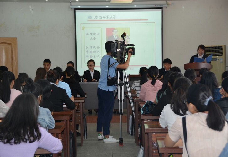 (本网讯 文/花雨晴)9月7日安徽电视台记者来到公司采访了中研会理论宣讲团及其开展的理论宣讲活动。 安徽电视台记者首先拍摄了宣讲团在beet365和儒林西苑社区举办的“五大发展理念”宣讲活动。然后记者采访了中研会首任会长姚宏志教授以及现任现任指导老师张正光教授。谈及宣讲团的发展历程,姚宏志教授记忆犹新:“宣讲团源自我们班理论学习兴趣小组,成立于1995年3月,最初只有三五个人,当时名字叫邓小平理论研究会。”从成立时的学习小组到如今的宣讲团,一代代宣讲人紧跟时代步伐,大力宣传党的路线方针政策,不断推进马克思主义中国化最新成果的大众化、普及化。现任指导老师张正光教授在接受记者采访时表示为了夯实宣讲团成员理论功底,让宣讲真正做到群众喜闻乐见,他系统学习了马克思主义经典著作及党的最新理论创新成果,并把这些成果转化为自己的教学语言传授给宣讲团成员。