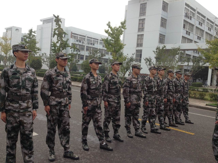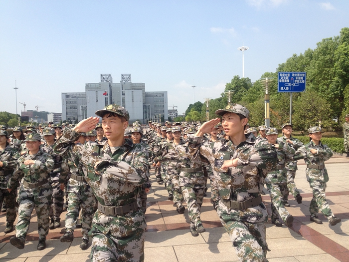 为扣好大学的第一道扣子,塑造政教学子爱国进步、团结协作的精神品质,公司同学在院领导、辅导员及教官的指导下积极投入训练之中。训练期间,在灼烧的烈日下,偶尔会有一两位新生体力不支,但身边的同学总在关键时刻伸出友谊之手。而后,他们凭借顽强的意志,又投入训练,方阵从来没有空心,从来没有缺角。“踢到离地30公分、脚要绷直、脚尖下压、手臂摆直”,这是队列方阵的同学们倒背如流的一句话。教官每天不厌其烦地重复着最基本的动作要求,一个动作一定格,一定格就是一两分钟。提起这个,大家都叫苦不迭。但当问到同学们的军训感受时,赵笛说:“很累,但很快乐,很充实,个人意志得到了锻炼,对集体多了一份归属感。”在教官亲切的关怀和严格的训练下,短短几天,同学们的预定训练科目已初见成效。标准的军姿,整齐的队列,同学们的眼神中流露出执着与坚定。嘹亮的军歌,铿锵的步伐,同学们的稚嫩中透露着自信与果敢。
