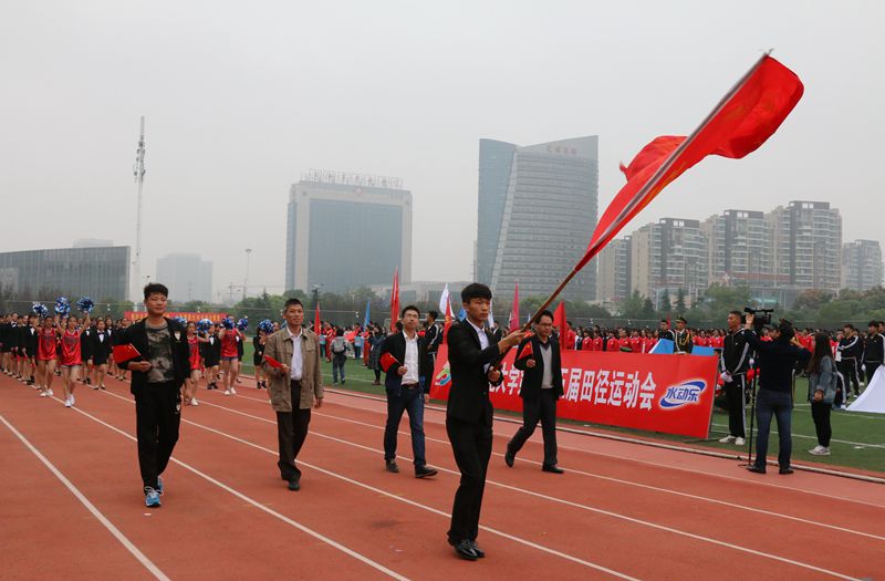 伴随着慷慨激昂的进行曲,各公司方阵依次入场。公司学子们穿着统一的院服,踏着整齐矫健的步伐,面带笑容,昂首阔步。在主席台前,挥动着手中的小红旗,喊着“青春似火,超越自我,政教健儿,奋勇拼搏”的响亮口号,向全校师生展示了蓬勃向上,积极自信的精神风貌。