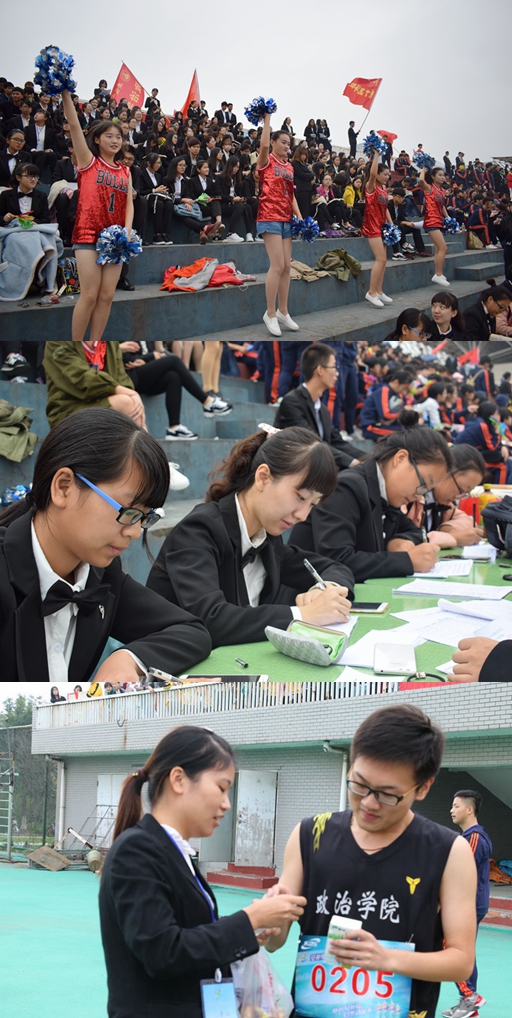 选手们在赛场上披荆斩棘,后勤工作人员也在默默奉献着。员工会成员一边维持看台的秩序,检查看台的卫生,一边安排人员为运动员们送上食物和水,带领运动员们检录;拉拉队成员们不畏秋凉,用活力四射的拉拉操为运动员们加油打气;“小记者”们奋笔疾书,认真及时地线上线下双渠道投递通讯稿,为运动员们传递鼓励和祝贺;看台上的观众们,手挥小拍手,大声呐喊,为运动员们助威。他们,兢兢业业,勤勤恳恳,圆满完成各项工作,确保比赛的顺利进行。